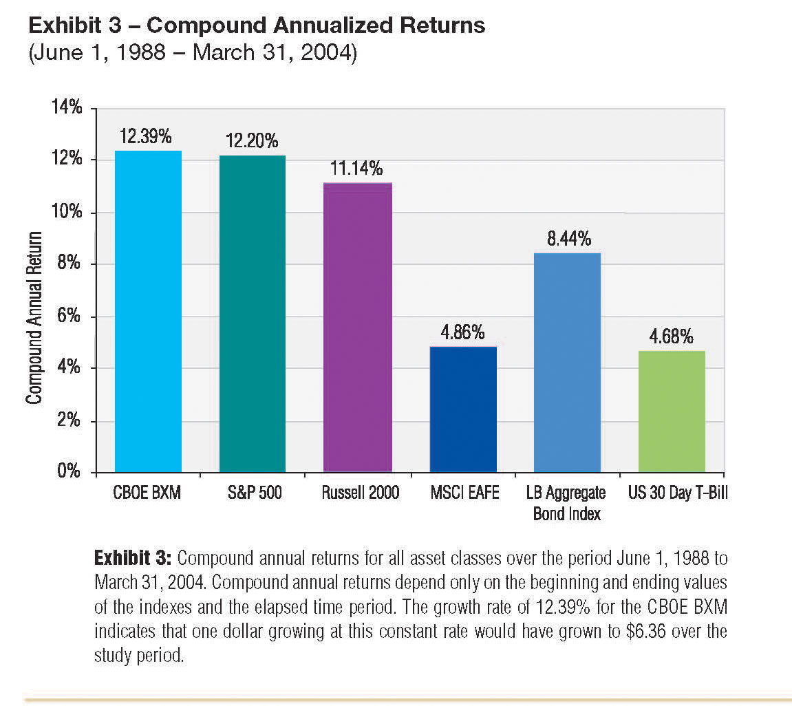- The buy-write strategy, as exemplified by the S&P 500 and BXM, is no longer as attractive as it used to be from a total return perspective; the buy-write strategy is, in fact, markedly inferior in this respect to simply buying the damn index