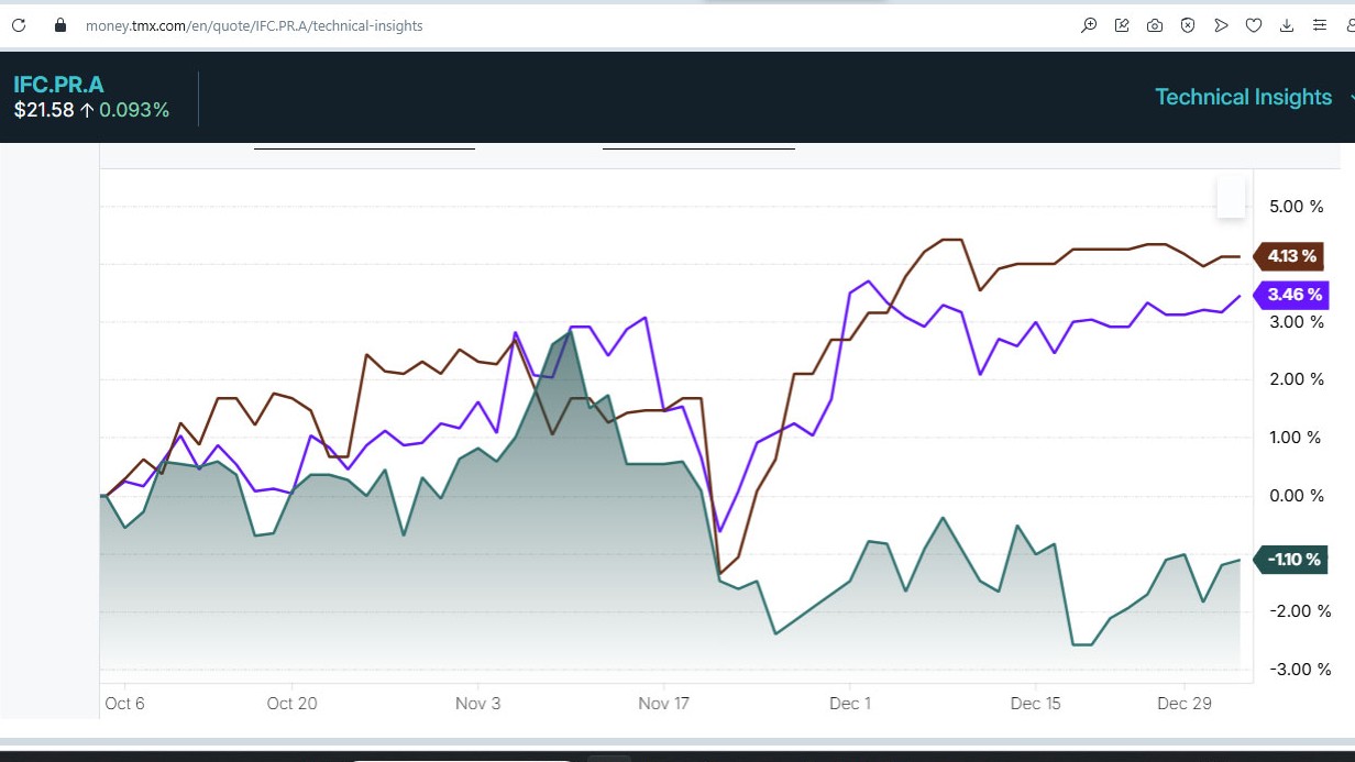 In the following chart, IFC.PR.A is the green ‘area chart’, while the blue and brown lines are the issues sold.