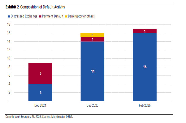 — We attribute the rise in distressed exchange situations to borrowers still struggling with declining revenue, weak operating margins, and a significant debt burden.