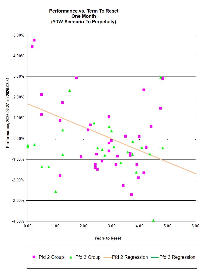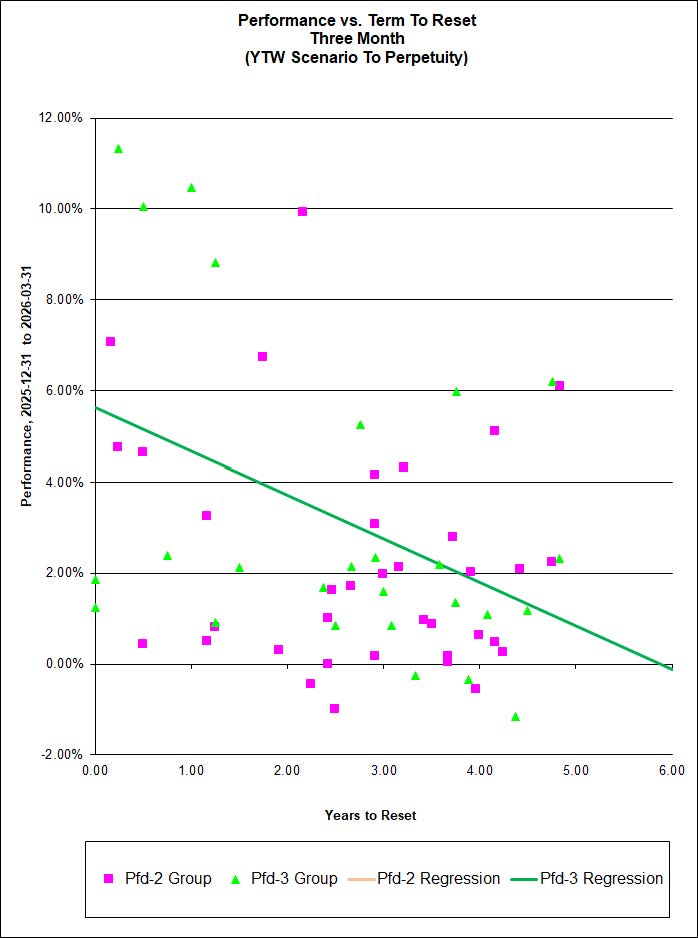 So at the time of initial writing (2026-04-06) only three of the comparator funds have published returns to March month-end and eight have not. I will, as usual, have to attempt to fill in the blanks prior to publishing the April PrefLetter. Remember, readers, if you want customer service, you have to go to a big firm like Hymas Investment Management Inc. – if you go to some tiny outfit like Royal Bank, you’ll find that they simply do not have the resources to publish returns promptly after each applicable month-end. They have published their prices, most of them: updating the performance numbers to reflect these data would be trivial programming work – if they cared to do it.